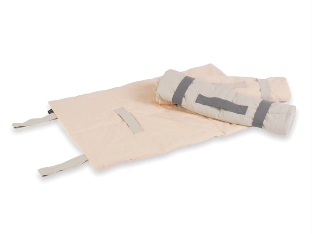 Manta portátil con manija y sistema de agarre para llevarla con estilo y practicidad.